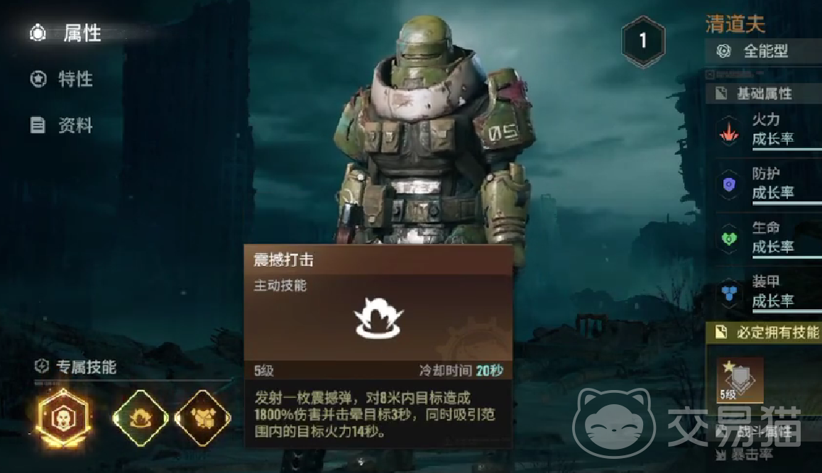 如果玩家想要培养清道夫这个角色,装备的词缀则需要以重甲核心为主,全面性的强化清道夫的护甲恢复能力,以及减伤效果。