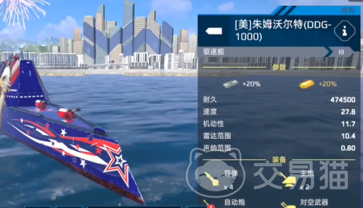 新手在进入游戏之后可以选择朱姆沃尔特,这是一个加装了四枚导弹的船只,这个船只的外观比较精美,加上耐久性也很优秀,新手在前期使用是完全足够的,但是这个船只的缺点就是,输出能力相对比较弱一些,并且在对战的时候,防控能力相对也比较弱,后期需要更换成其他的船只才可以。