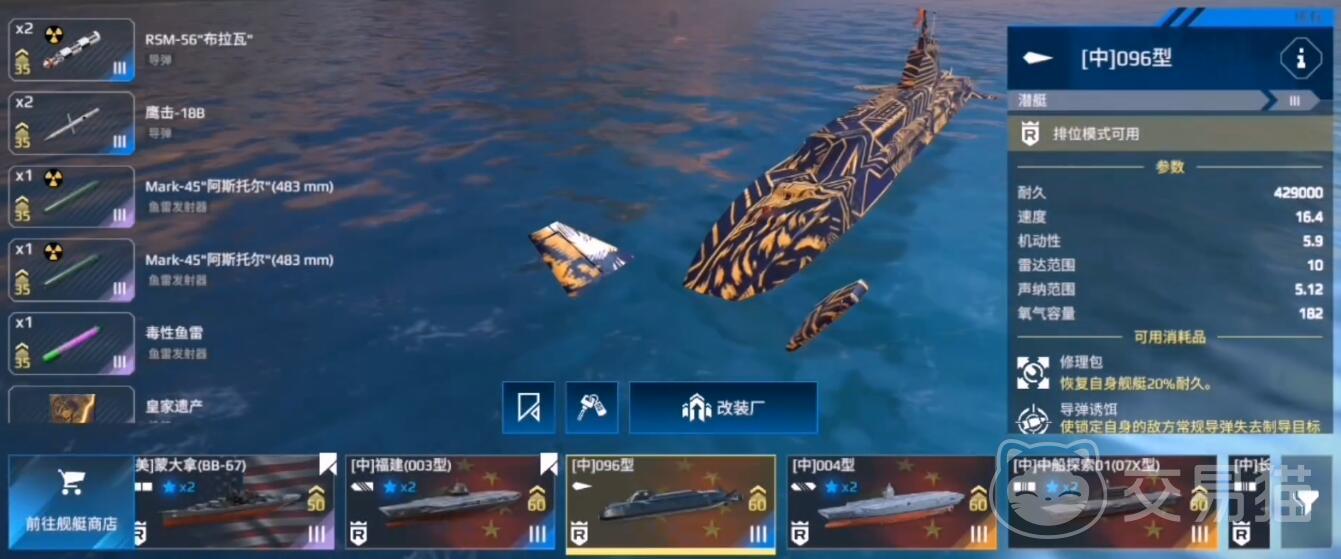 战略型潜艇推荐096型和北风之神级,前者下潜深度达600米,隐蔽性极佳,可携带巨浪-3导弹实施远程核威慑;后者火力凶猛,搭载布拉瓦导弹,但机动性稍弱。使用这类潜艇时要保持距离,避免与敌方驱逐舰正面交锋。需注意战略潜艇通常需要队友配合提供视野支援,单打独斗容易暴露位置,