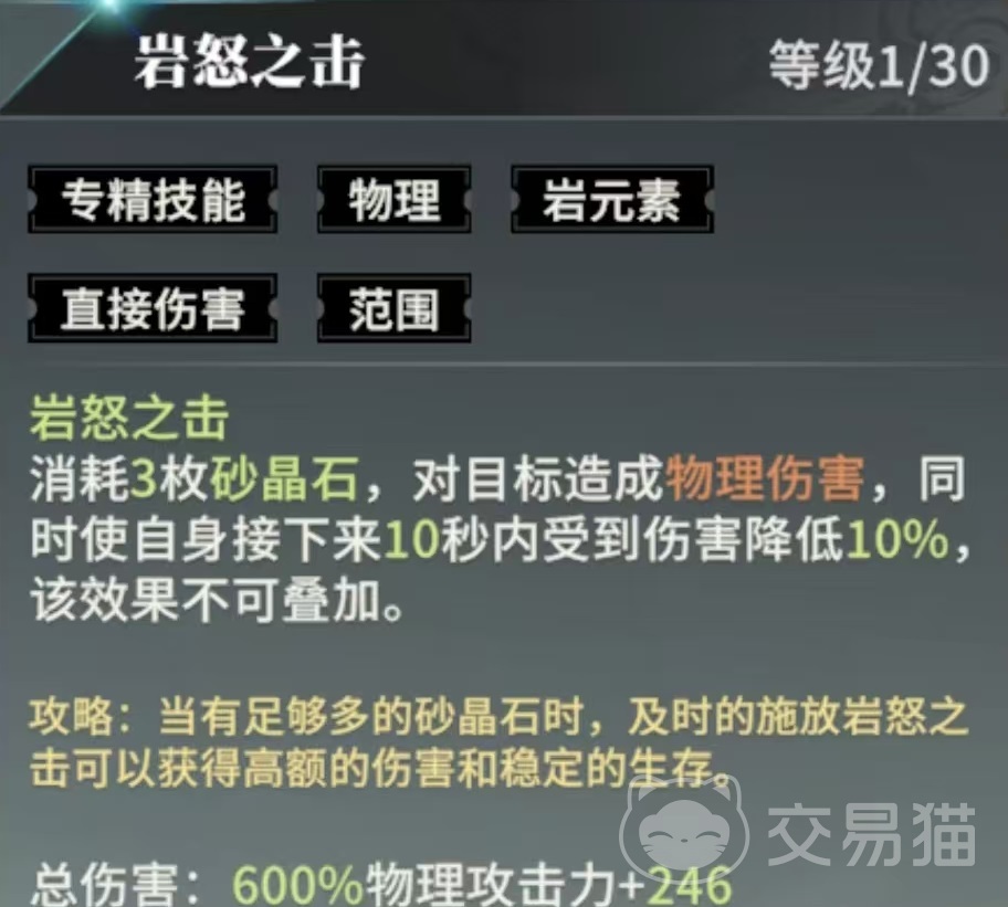 在使用的时候,这两种流派也有着不同的技能搭配和手法,先来看一下使用最多的岩盾流。岩盾流具有出色的生存能力,高额护盾可以缓解奶妈治疗压力,能够扛住非常多的伤害,配合减伤和治疗药,在没有奶妈的治疗下也可以拖延时间。如果是在单人游戏,那么推荐携带碎星冲、岩怒之击、砂岩之握、斗篷。在普通单体boss环境下,技能推荐变为了碎星冲、岩怒之击、斗篷,加上任意一个其他技能。如果是高压副本环境下,那么推荐碎星冲、巨岩躯体、斗篷、沙岩守护的技能组合。