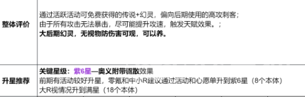 白虎本身就是传说品质的一个幻灵,在获取时是比较简单的,建议在入手之后需要先提升攻击的速度,如此就可以有效触发天赋的效果。由于所有的攻击都没有办法产生暴击,在提升攻击速度之后就可以拥有一个可观的伤害。另外奥义还可以直接附带驱散的效果,可以进一步的增强实用性。