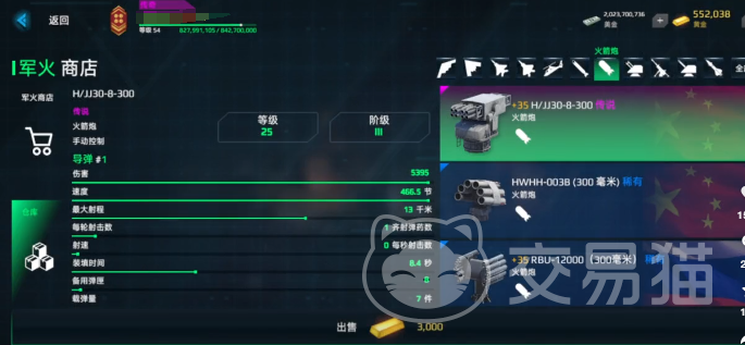 满级伤害是5070,有8.4秒的冷却时间。表面的数值伤害好像要比a22更强一些。但实际上并不是如此,顺便说一下现在火箭弹的伤害有所下调。但在下调之后出售的价格没有变化,还是3000个金条。
