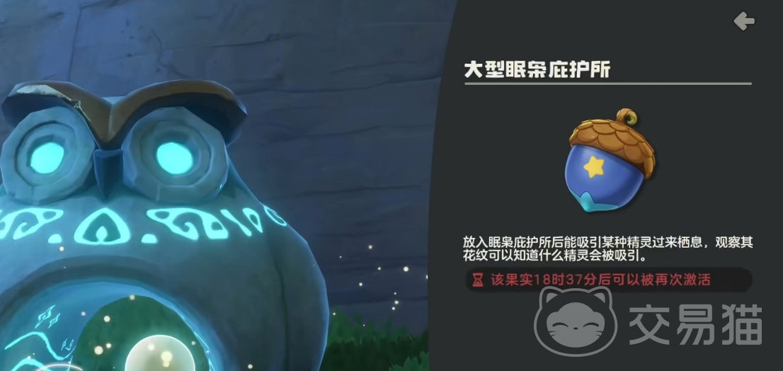 拿到果实后到达海边的庇护所,在眠枭庇护所中放入合适的果实,就是蓝色果子且中间有颗星星的,这样就能在附近的海域中刷新出深海鲸这个精灵了。