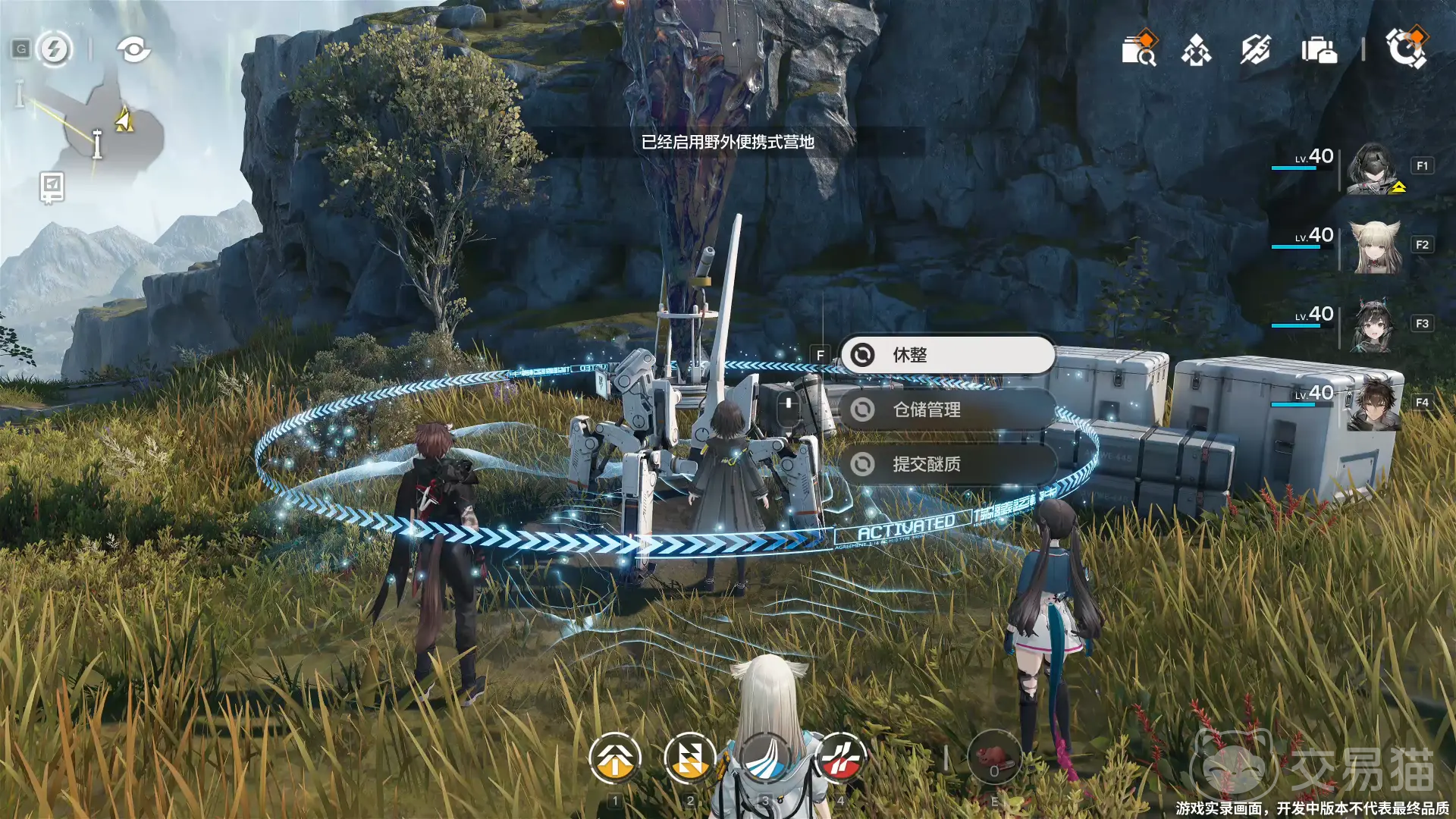 如果大家想要开启便携式野外营地的话,直接在自己的背包中将便携式营地拖在野外的某个位置。然后就会自动生成一个便携式营地了,营地的造型也颇为奇特。虽然没有犹如工业园一般庞大或者设施丰富,这也像是一个机器人一样,能够维持运转。