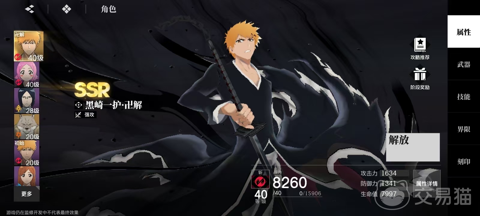 在目前的游戏中,小编认为处于t0层次的角色一共有三个,分别是黑崎一护万解状态、朽木白哉和朽木露琪亚。在这三个角色中,黑崎一护万解状态以绝对的强势处于第一的位置,这个角色拥有非常强的爆发能力,它的技能可以分散,也可以集中攻击单个目标,月牙天冲技能更是可以对直线目标释放高穿透性技能,对虚无属性的敌人能打出更高的额外伤害。当处于万解状态下时,普通攻击积累灵压,释放一技能后直接衔接普通攻击触发剑气分支效果,增加穿透性伤害,在各种战斗中都是绝对的输出核心。
