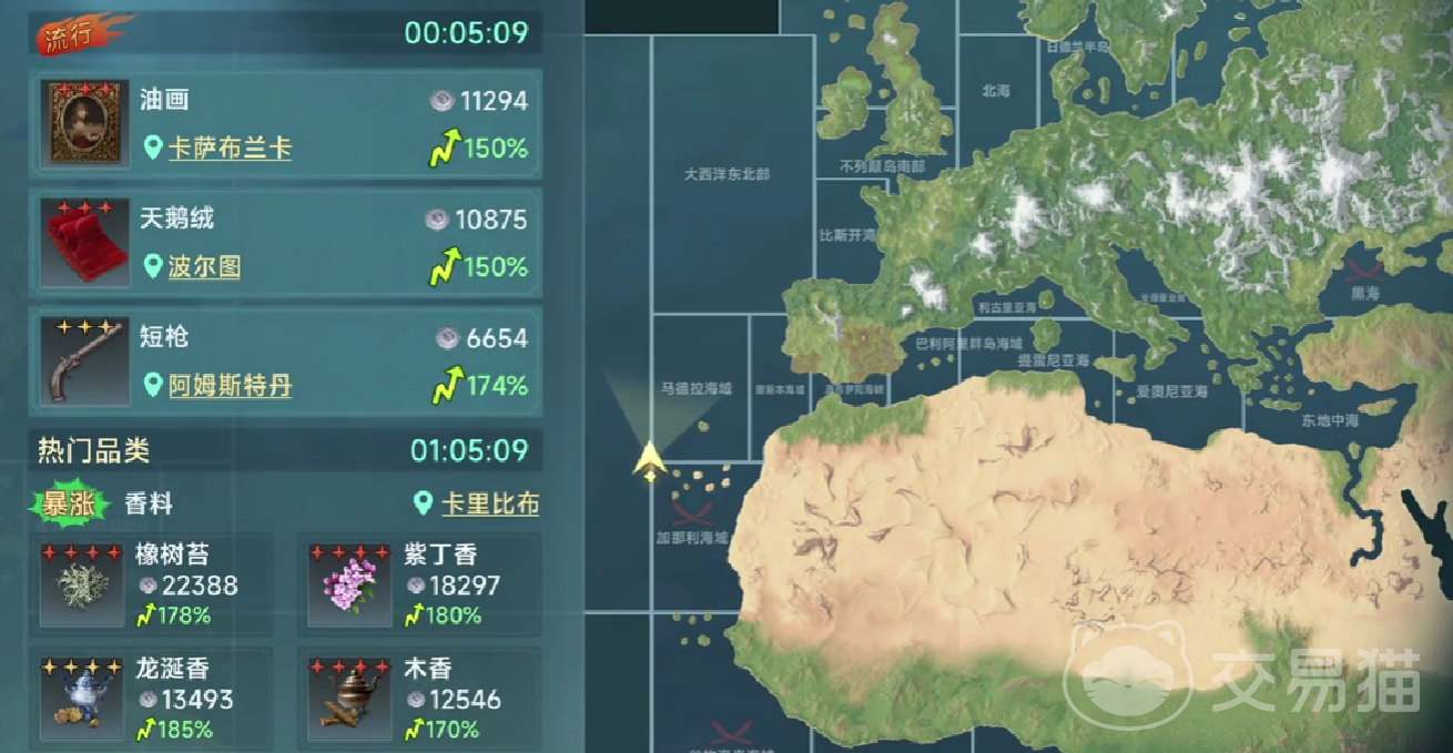 当玩家到了后期阶段,这时候已经拥有了大型的船热选择的路线是乐圈到黄金港。其实这里玩家可以去非洲内陆获得一些稀缺的资源,毕竟稀缺的资源利润空间比较大,而船只已经得到升级,此时玩家更适合远程风险更大的路线。