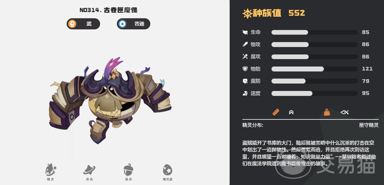 3.古卷匣魔像:武系与普通系精灵,特性勤学每回合提升少量物攻。技能书包重击造成高额伤害,课间休息回复生命值。推荐性格固执,参与学院日常任务获取。