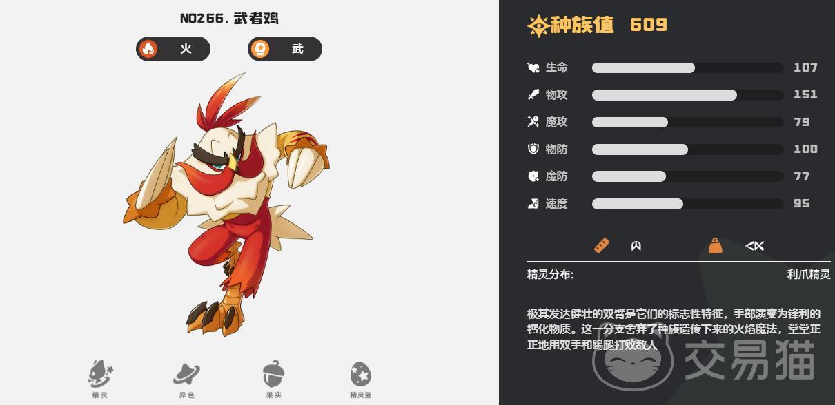 10.武者鸡:由晕晕鸡进化而来,定位为物理爆发型输出,核心技能炎爆拳与折翼拳形成双属性打击链。推荐配招:炎爆拳+折翼拳+强健体魄+火焰冲锋。需在36级时通过特定战斗条件触发进化。