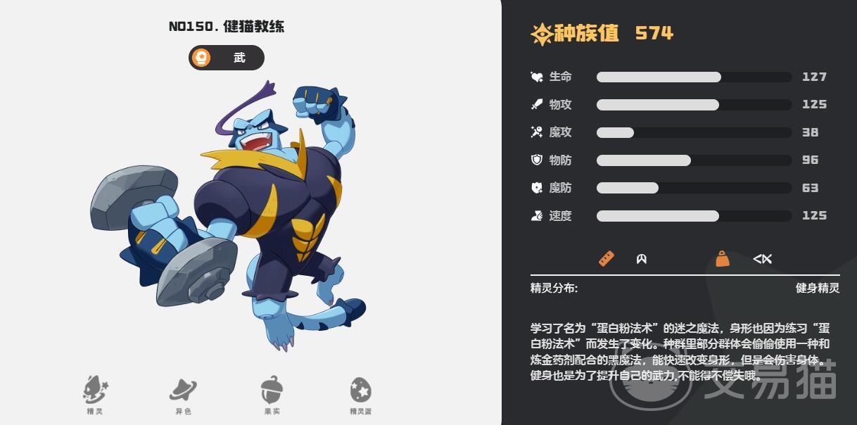 7.健猫教练:普通系与武系精灵,特性特训提升全队物理攻击。技能激励拳可为队友提供增益,组合拳造成多段伤害。获取方式简单,捕捉呼拉猫之后常规进化即可。