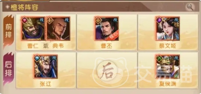 前期比较推荐大家用的一个阵容就是魏国阵营的阵容,大家可以利用中毒与召唤物这两种关键特性,使魏国武将的技能产生强大的联动效果,在推荐的前期阵容中,曹丕、典韦、曹仁、蔡文姬、张辽、夏侯渊这几位武将各司其职,共同构成了一支攻防兼备的强大队伍,曹丕作为队伍的核心人物,掌握着关键的放毒效果。