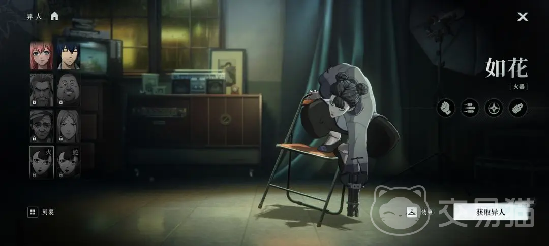 游戏中的如花有很多不同的版本,如花是马仙洪利用神机百炼制造的机关人偶,能装备各种不同的轻武器,而火器如花就是装备枪械射击的,目前使用下来她十分的强势。普攻“七星弹”,使用左臂向前方进行射击,普攻是一个远程性的输出,这与其他异人不同,不能打断敌方的动作。基础技释放,她可以滑铲将敌人踢到空中,并用炮追击,基础投技的输出距离也比一般的角色要远很多,能克制对手的防御。