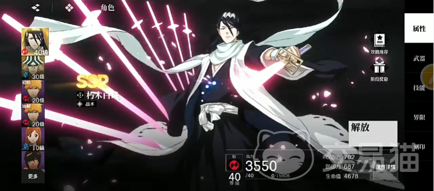 朽木白哉是原IP中非常经典的角色,同时在游戏里也是最高品质SSR,他的战斗能力是非常惊人的。首先是他的战场技千刃,战场技生效时,队伍中所有角色的伤害都会提高30%,会在除了他自己外的角色释放普攻分支,战技以及封灭反击后的两秒被激活,而且该招式可以使用的次数是非常多的,伤害也非常的可观;如果释放该技能后战场技的能量归零,他可以追加一次攻击,其效果等同于普攻的第四次。