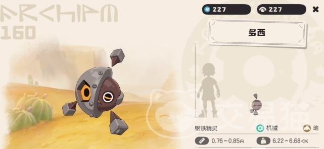 首先介绍的第一种精灵就叫做机械方方,它的种族值比较低,只有337点,在回合结束之后,玩家们可以利用它的特性来打乱敌人的技能顺序,攻击方面也可以来使用技能进行叠加应急攻击,它的效果还是非常不错的,可以增加技能的威力,在此基础上,它还拥有三种不同的形态,进化到第三个形态的时候,物理和防御都会大幅度的来得到升高。