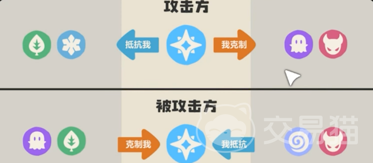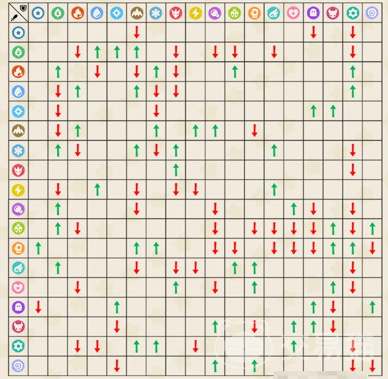 图中所示的就是目前18种属性的克制关系,单系别克被克制的话,伤害翻倍,被抵抗则伤害除以2。双系别被克制的话则伤害乘以3,被抵抗的话则伤害除以3。