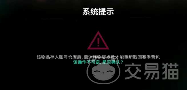 需要注意这个放入的操作是不可逆的,大家一旦放进去,想要取出就需要花费一定的物资点数,所以大家在放入前一定要确认好,避免放入了自己还有需要的物品,白白浪费掉物资点数。
