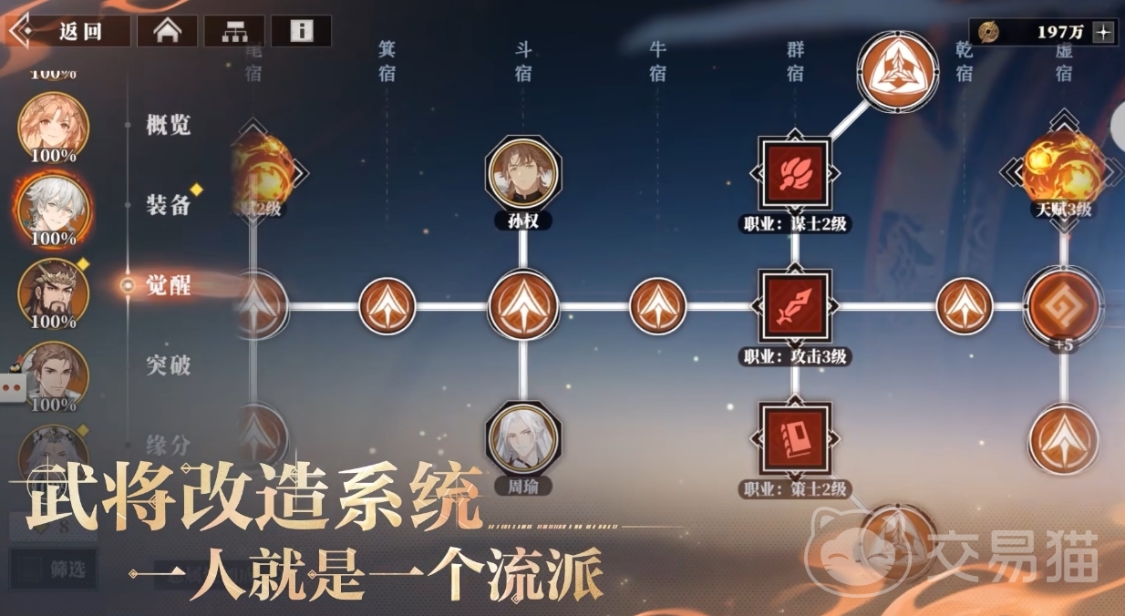 游戏秉承三军无废将的理念,致力于为每一位玩家打造公平且富有挑战性的游戏环境,在这里所有角色都有平等的升阶机会,都可以一路成长至SSR级别,彻底抹平了数值上的差异,全新的武将改造系统闪亮登场,这些各具特色的武将相互配合,构成了一个丰富多彩、充满变数的战斗体系,每个角色都不可替代,都能在战场上发挥出关键作用。