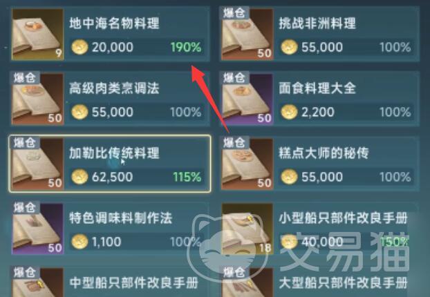 解锁12级烹饪后,前往牙买加购买《加勒比传统料理》食谱。准备材料:巨骨舌鱼1、粗盐3、迷迭香*2。粗盐通过里斯本盐田生产,迷迭香在巴伦西亚交易所采购。