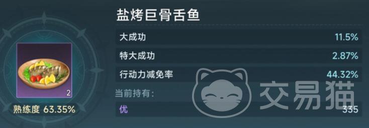成品盐烤巨骨舌鱼可恢复120点行动力,是常规料理的3倍效果。战斗前使用可使舰队获得饱食状态,24小时内海战伤害提升8%。多余成品可挂海市交易,单价建议设定在4.5万-5万金币区间,注意每日交易税率为15%。保留3-5份用于紧急任务,如幽灵船讨伐或遗迹探索。