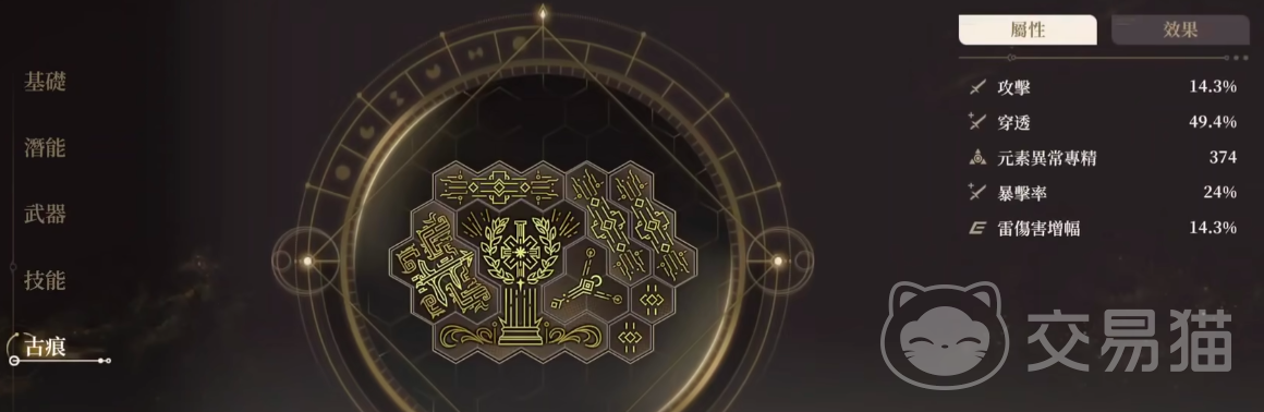 该角色的攻击属性高达14.3%,穿透属性高达49.24%,在游戏当中无论是近身作战还是远程助攻都有着非常不错的表现。成功提升等级后可激发潜能,获得面壁、凝影、洞悉、离穴、破壁、返穴、靓日七大加持技能。