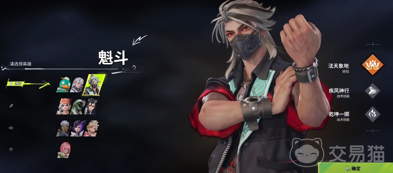 非常灵活的侦查型角色,技能疾风神行可以获得加速,但加速期间会持续掉血,损失的血量会在脱战后慢慢恢复。技能“乾坤一掷”则可以投掷乾坤雷,被命中的敌人会受到伤害与减速,乾坤雷可以感知侦查敌人。大招法天象地,在这个形态下攻防能力都得到大幅提升,命中敌人可以减速,击败击倒敌人可以延长大招持续时间。在战术射击游戏里跑图能力是很重要的能力。魁斗可以在战场中提供视野优势,配合队友进行突袭。