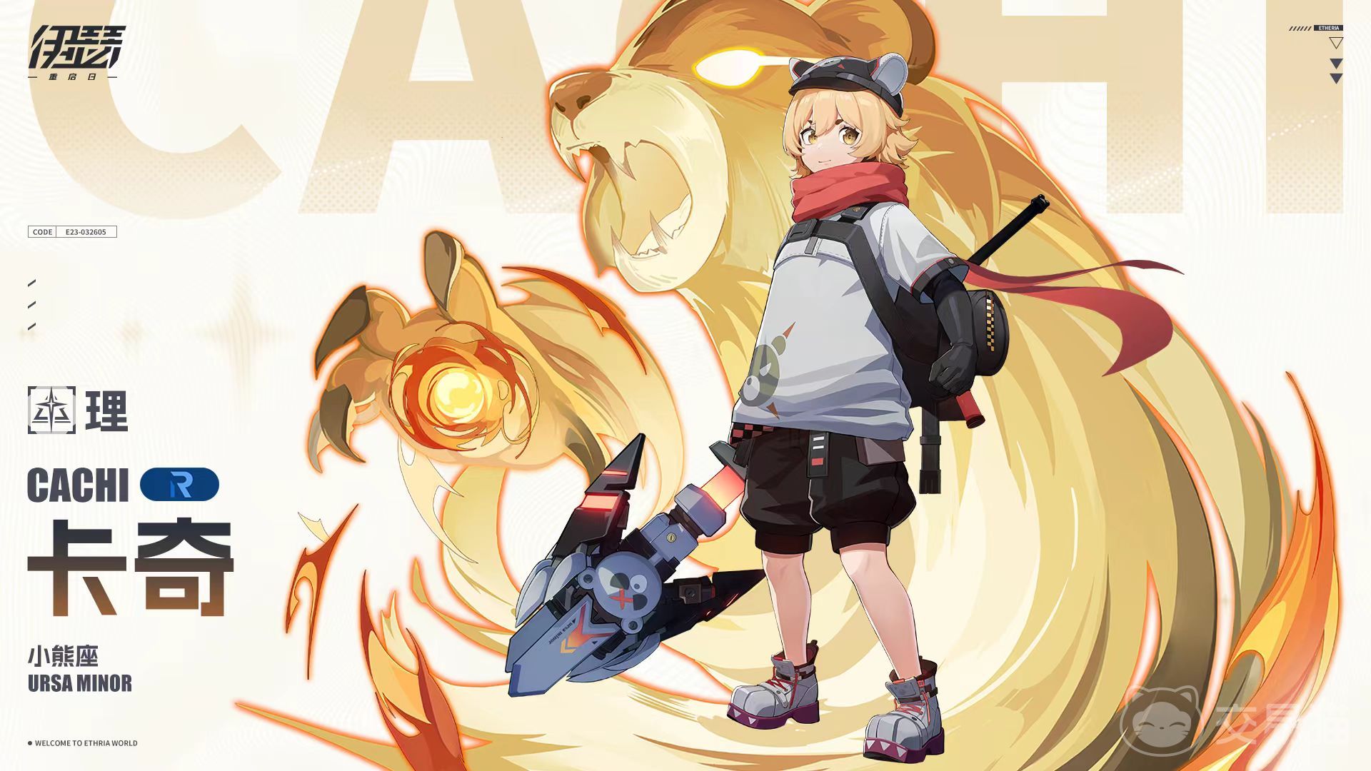 卡奇是属于超链者协会势力,他的称号是小熊座,是一个很传奇的天马行空的少年英雄。卡奇从收养他的药剂师那里学到了很多关于秘药的知识,所以才出现了一系列天马行空的发明创造,他所制作出来的药剂很受欢迎。普攻正义光束,用熊爪杖朝目标进行定向爆破,对敌方单体目标造成200%的伤害,还有20%几率击退20%的行动进度。可以击退行动进度,是这个角色很有特点的地方。