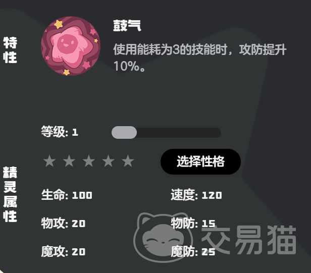 梦想三三的初始属性为生命100、物攻20、魔攻20、速度120、物防15、魔防15,比如说我们需要增加梦想三三的物攻,那就需要选择固执的性格,性格的选择不仅决定着梦想三三的属性同时还决定着我们选择什么样的技能。