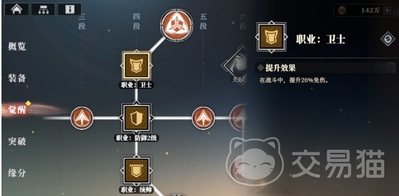觉醒系统跟职业系统也有关,升级到一定的程度大家就可以看到转职,并且玩家可以花费玄龙珠去解锁上下两个分支的职业,后续当武将达到十段时,进阶职业也能够进行升级。基础职业最多可以升至3级,而进阶职业目前只能升至2级,职业升级后会带来更多的效果,以孙开朗为例,基础防御职业原本可以为同列队友分摊伤害,升级后不仅能够继续分摊伤害,还可以减免部分分摊过来的伤害,而卫士职业可以有效提升单体的坦度。