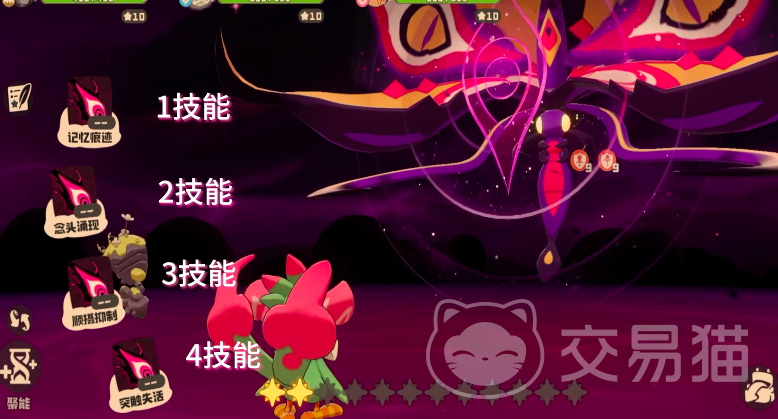 在技能释放上,玩家推荐四大技能,分别为记忆痕迹、念头涌现、顺摄抑制、突触失活,技能发动的正确顺序,会以数字方式向大家展现,第一回合中宠物的出招顺序为“突触失活”、“突触失活”、“记忆痕迹”,第二回合的出招顺序为“突触失活”、“突触失活”、“顺摄抑制”;第三回合的出招顺序为“记忆痕迹”、“突触失活”、“顺摄抑制”;第四回合的顺序为“突触失活”、“顺摄抑制”、“记忆痕迹”;最后一个回合的出招顺序为“突触失活”、“记忆痕迹”、“记忆痕迹”,按照这个顺序是可以快速取胜的。