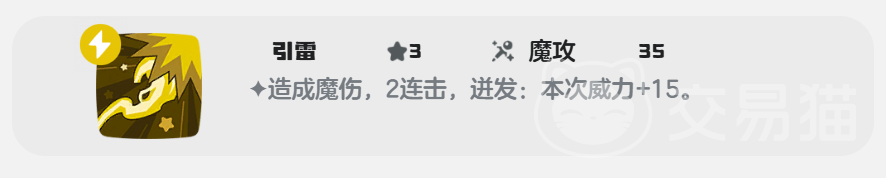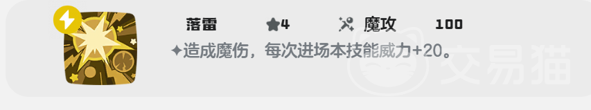 落雷也是魔法伤害的技能,该技能魔攻100点,每次该技能先进场都可以直接使技能威力在提高20点。