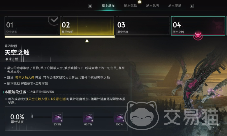 在赛季的第4个阶段,天空之处的这个玩法会开放,这时候在游戏里玩家可以进入到边境区或者是公共事件中,完成天空之触的挑战,在完成这个任务之后,玩家可以获取到大量的奖励,另外除了天空之触,还会同时开启一个名叫根源之战的办法,前一个任务要求玩家在相应的时间内击败天空触手,后一个任务则是需要玩家通过击败更多变异体获得大量的积分。