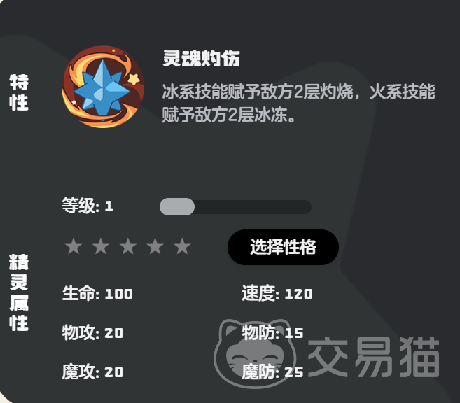 九尾狐的特性为灵魂灼伤,这个特性很好的把它的冰系和火系能力给发挥了出来,先用火系给敌人附加上2层的灼烧,然后在用冰系技能附加上2层冰冻。