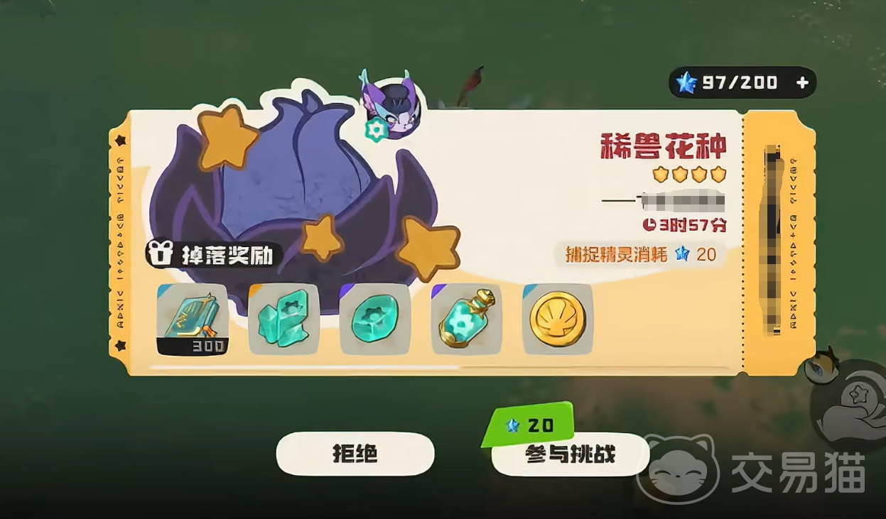 地图上会随机刷出稀兽花种,击败它就有小概率能获得闪光精灵。每一只稀首花种所刷出的精灵都不一样,各位除了能在自己的世界里刷以外,还可应邀去其他人的世界里刷取。每次刷取都需要20体,如果体力不足是没办法拿奖励的。