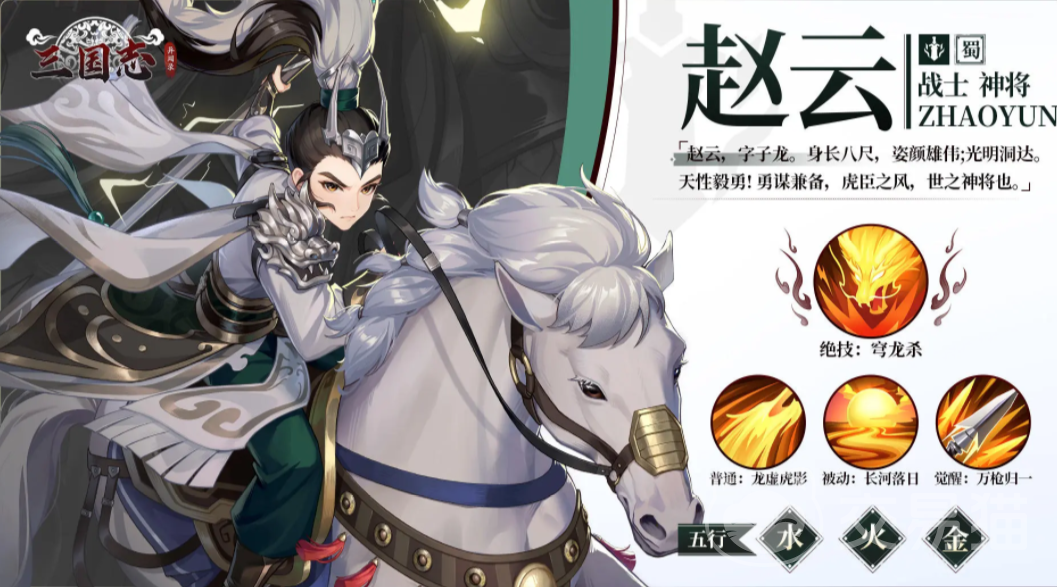 三国志异闻录是一个可以完全还原三国设定的游戏,不止场景,就连游戏里的武将包括每一个武将各自的策略,都做到了完美的还原,这一切要带来的是,赵云是大家非常熟悉的一个角色,三国志异闻录赵云阵容推荐,自然是玩家们应该要了解的内容,通过这些内容,可以找到最适合的阵营搭配,同时还会介绍一下这个角色在游戏里的相关属性和技能。