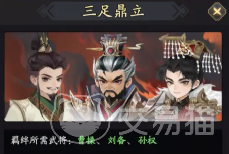 在游戏里孙权最适合和曹操,刘备组成一支队伍,这三个角色如果同时出现在一个队伍里,就可以解锁相应的专属羁绊,在这个羁绊效果之下,三名成员的速度都能得到48的提升,并且在激活羁绊之后还能得到食物、酒,以及珠宝的奖励,可以用这些奖励提升角色之间亲密程度,在这个基础上,玩家还可以选择战斗能力比较强的放到队伍中,这样才能更好的和孙权这个谋士进行搭配。