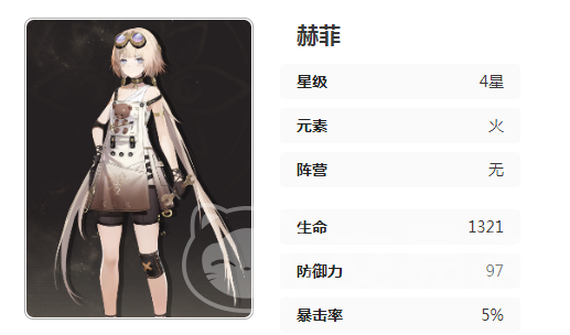 赫菲:火属性辅助。第1个技能就可以直接创造出一个专属的领域,可以打乱敌方的阵营大招,还可以造成可观的群体伤害。在团队战斗的过程中是一个必备的角色。