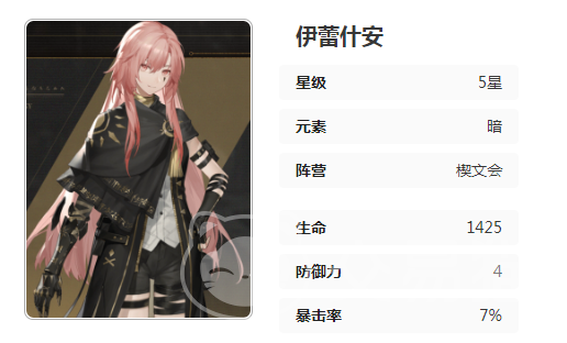 伊蕾什安:SSR 级角色,不仅会拥有输出,而且还具备控制的效果,在切换上场时就可以给周围的敌人造成97%的伤害,先手还会拥有一个较出色的压制性。