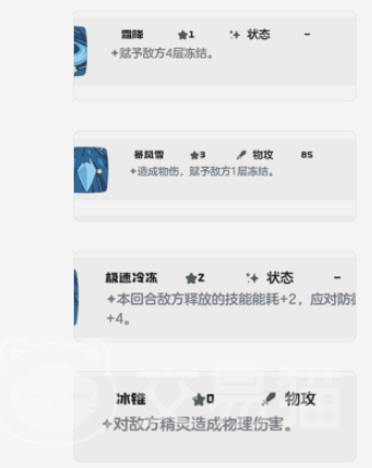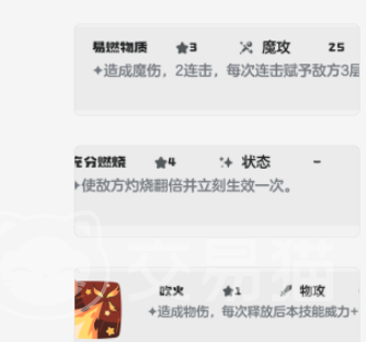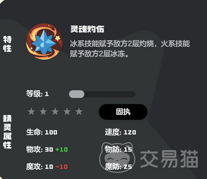它的特性还是灵魂灼烧,在使用丙烯技能战斗时,可以给敌人施加上2层灼烧的效果,等使用火属性对敌时又能给加上2层冰冻的效果,这种独特的特性染发它的技能给敌人带来更强的打击效果,输出伤害变得更持久。
