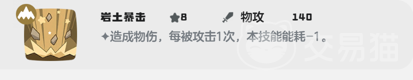 沿途暴击的耗能比较高一点,需要使用8点的能量值,造成140点物理伤害,岩土暴击有个优点,就是每当巨灵石受到1次攻击,在使用该技能时就能降低1点的耗能。