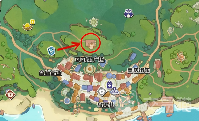 第3名教师的位置在可可果广场这名教师距离传送点会有些远,小伙伴们在落地之后,只需要朝着小编在图片的红圈中所圈出来的这个位置前进一段距离即可。拐过一个山坡之后,小伙伴们可以看到在这里有一个巨大的热气球,而最后一名教师的位置就是在这个热气球之下了。