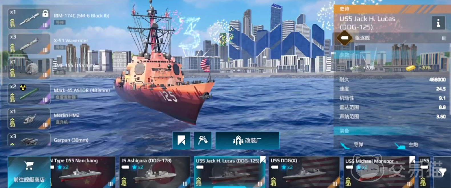 说到阿利伯克级这个战舰,它其实是特别厉害的,因为它的武器配置非常的高,在防空能力方面特别的突出,能够有效地拦截敌人的飞机,还可以拦截反舰导弹及弹道导弹。在实际作战的时候,可以高效防御敌人空中的战机,也能够有效地保护自己团队的安全。