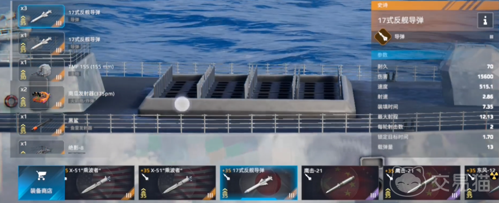 17式反舰导弹强度也就一般般,作为武器,它的强度属于中等,新手玩家在刚开始体验游戏的时候,可以利用它来过渡。而一些远程作战的玩家也可以选择使用它,毕竟在战斗的时候可以利用它的射程优势,直接向敌人发动攻击。
