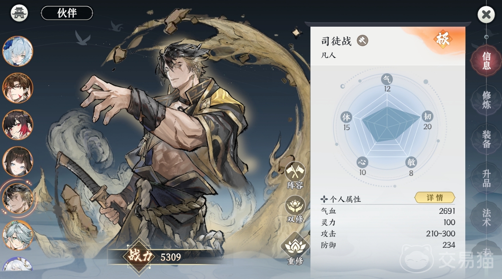 若没能抽到南宫婉儿和清沙,用司徒战来开局也不错,毕竟他有着破甲降攻和眩晕能力,能轻松应对绝大多数战斗环境,配合上青玉的加速冷却以及梵天帝的加血和增加暴击,也能为玩家带来很出色的增益效果。