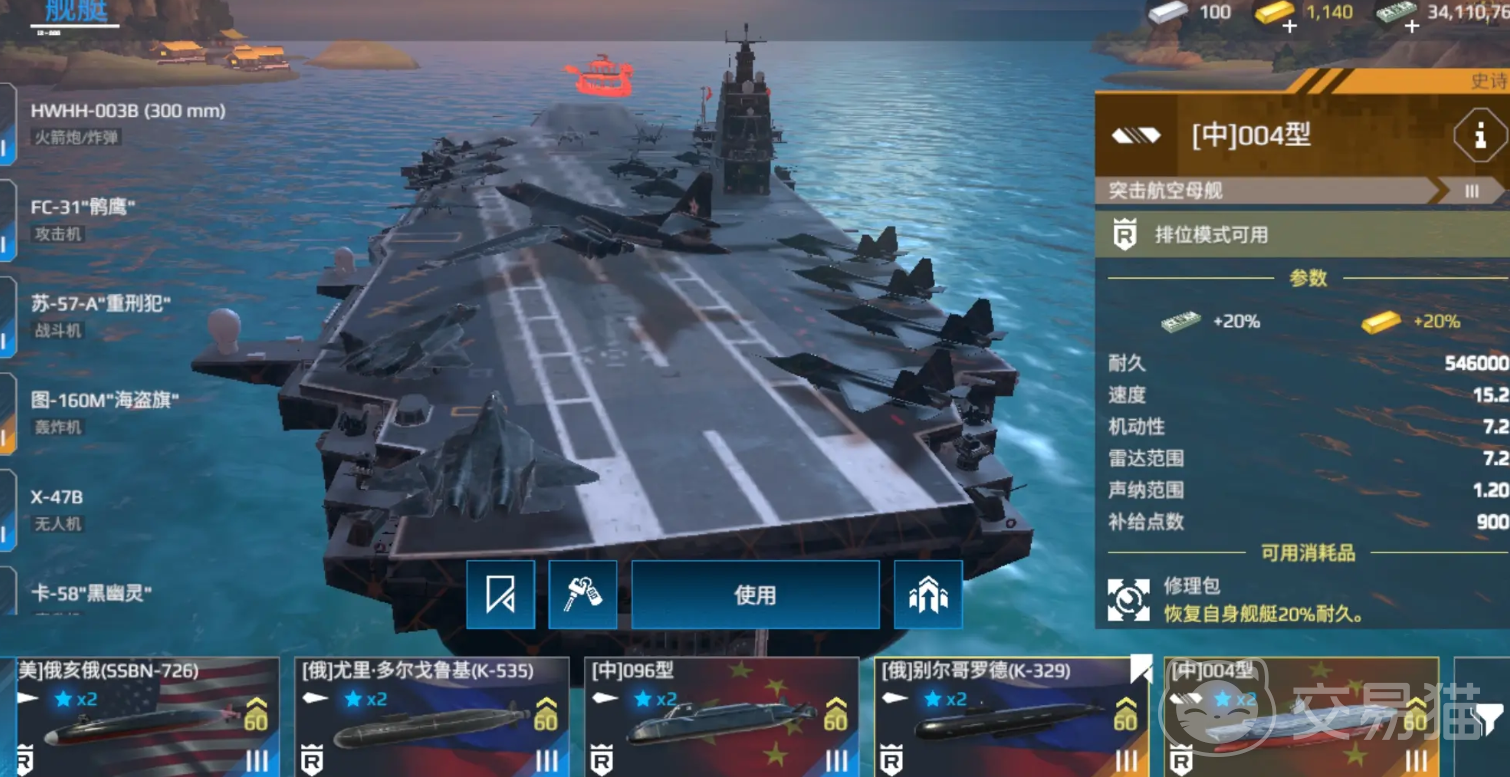 在游戏之中,航舰机和无人机的搭配,也会直接影响到航空母舰的战斗效果,载攻击机选用上面,建议搭配F35E或是歼31,这两个攻击机整体的性能均衡,非常适合新手使用。