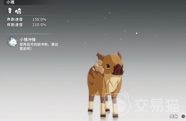 另外一个奔跑速度更快的坐骑就是皇家马,奔跑速度和疾驰速度都会比小猪更强一倍,并且这个坐骑还会有特定的技能,就是彩虹一跃,不但能快速向前突进一段距离,并且还会留下彩虹弧线。