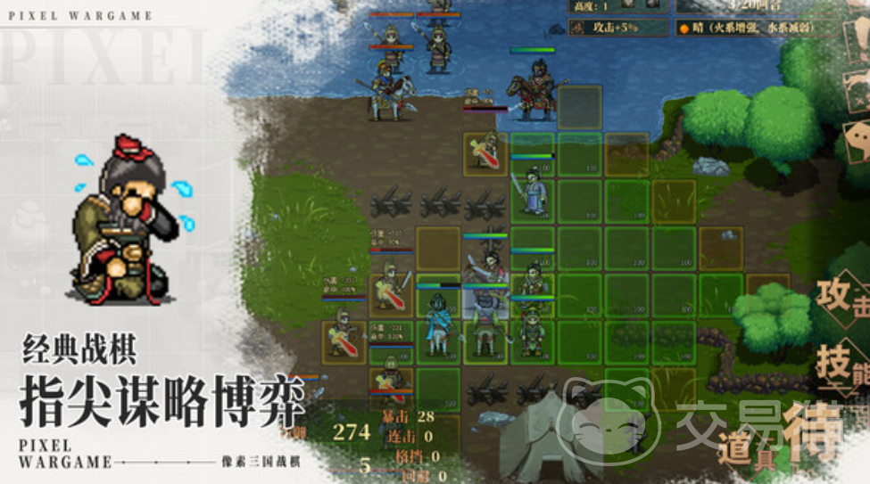 在游戏中采用的是经典的像素风格设计,还结合了回合制的战棋玩法。玩家在体验游戏时需要排兵布阵,也需要运用策略,应对众多的挑战。游戏中涉及到很多三国时期的经典人物,玩家在体验游戏时也需要训练提升武将的属性,让武将变得更加的强大,这样玩家才能够自身实力变得越发的强大。其实玩家也可以选择转职,毕竟在游戏中兵种不同,所拥有的技能属性存在一定的差异性。