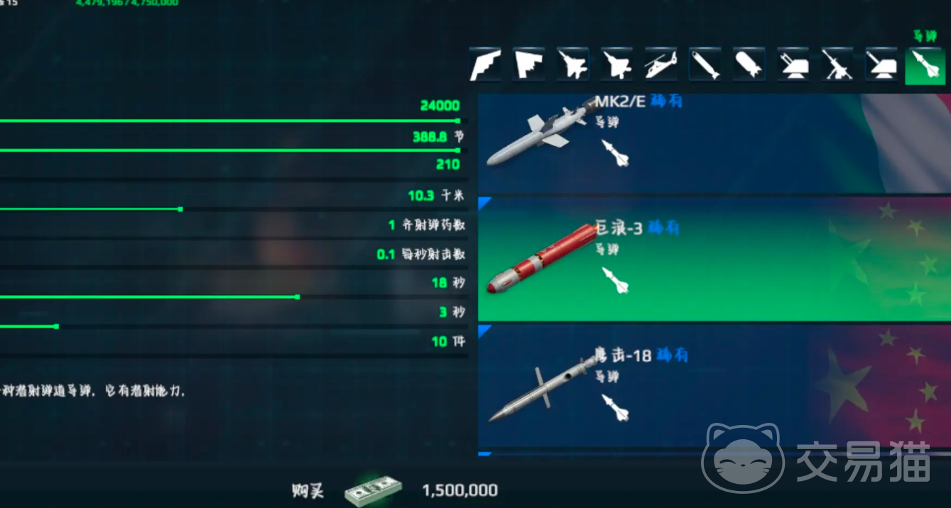 第二种是高爆型的导弹,它们分别代表的是三叉戟和花岗岩,三叉戟单发伤害拉满,可以达到39000点的伤害,但是非常容易被敌方防空拦截,需要配合突破防空的导弹一起使用。