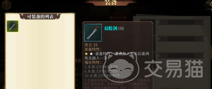 强化装备就能迅速的提升属性的角色,例如可以选择双股剑。在遭遇敌人攻击之后,还可以重新的攻击敌人,能够拥有较好的效果。