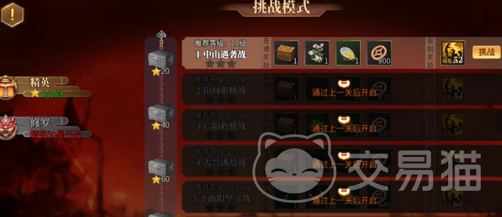 还有就是挑战模式,玩家在通过历史画卷第10关之后就可以开启,能有机会获取很多的提升材料,也可以有效提升角色的上限。这一个玩法也会拥有多种不一样的奖励,可以满足大家的需求。