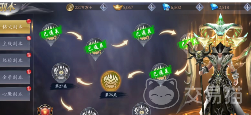 pve模式也就是大家所说的推图模式,在这个模式中我们需要完成不同的任务,通过任务可以获得各种奖励,除了任务以外,还加入了副本玩法,这里的副本给划分成为了铭文副本、主线副本、经验副本、金币副本、心魔副本等不同的类型,每个副本中的内容都是不同的。
