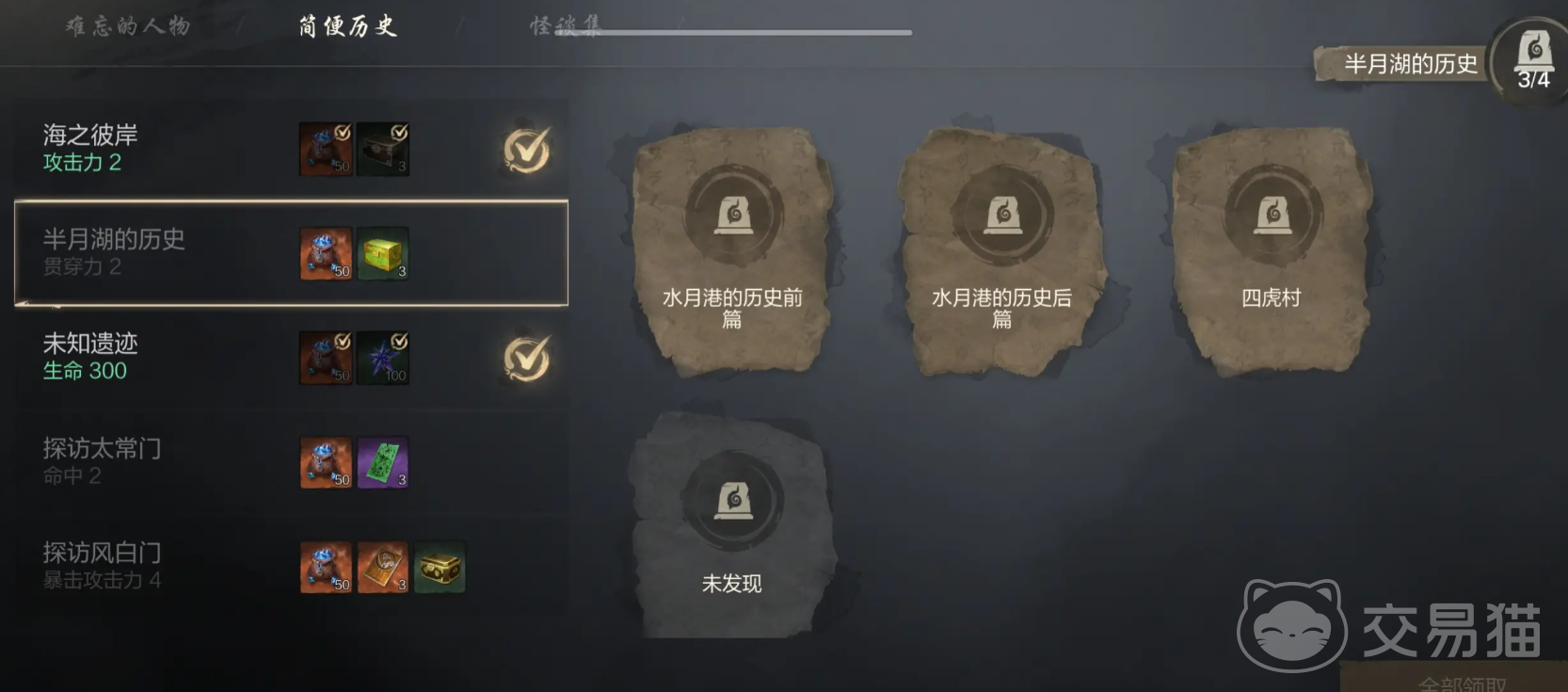 玩法比较简单,就像前言所说,将地图上角落的石碑收集起来,上面可能记录的是游戏里的一些剧情,一般都是明慧团的成员记录的,收集越多的轶事就越能了解到游戏背后的故事,而且收集齐全对应的轶事,就能给人物带来增益,比方说将”未知遗迹“集齐,能让生命值提高150。